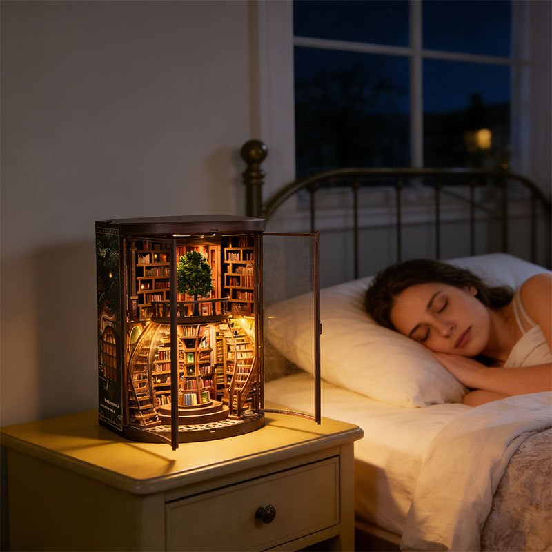 DIY Wooden Book Nook Kit – Miniature Bookend with Wisdom Rings, Home Decor Craft & Birthday Gift Idea