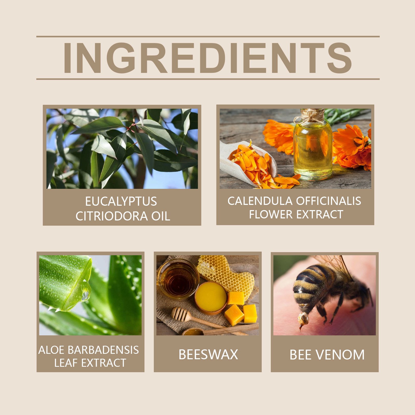 Our bee venom cream contains beeswax, bee venom and aloe vera extract. It can quickly relieve skin discomfort. Deep nutrition improves skin’s ability to repair itself. Its use is simple: 1. Clean and dry the skin; 2. Apply proper amount of the product evenly to the whole body; 3. Gently massage until absorbed. The ingredients are mild and not irritating, so you can use them with confidence.