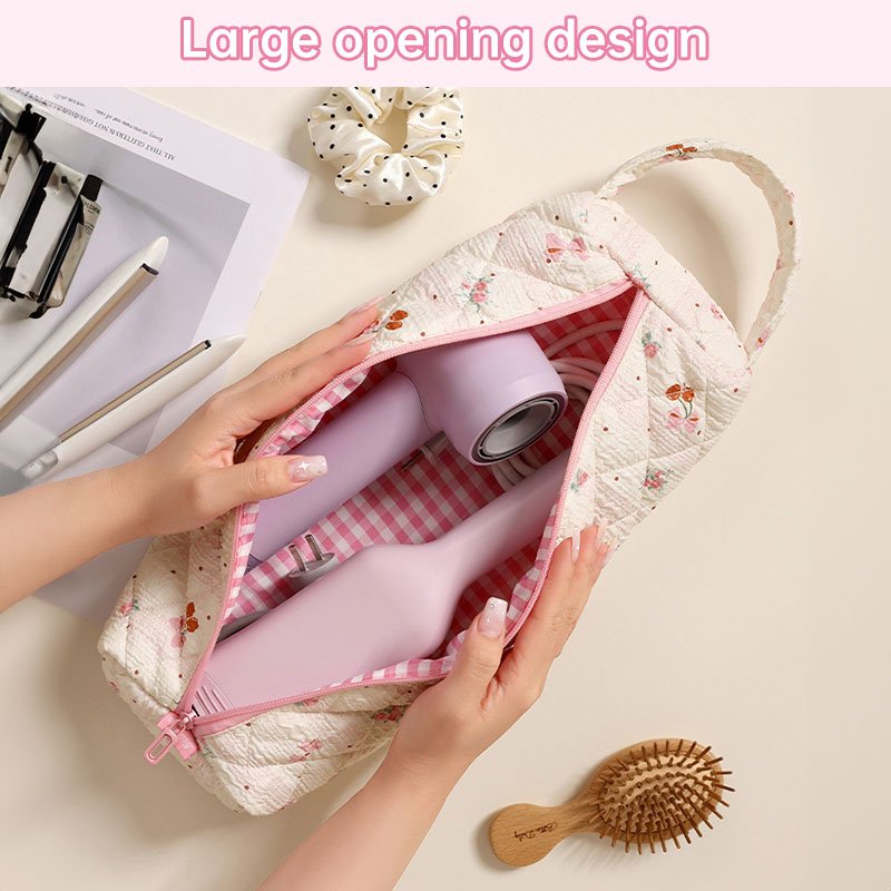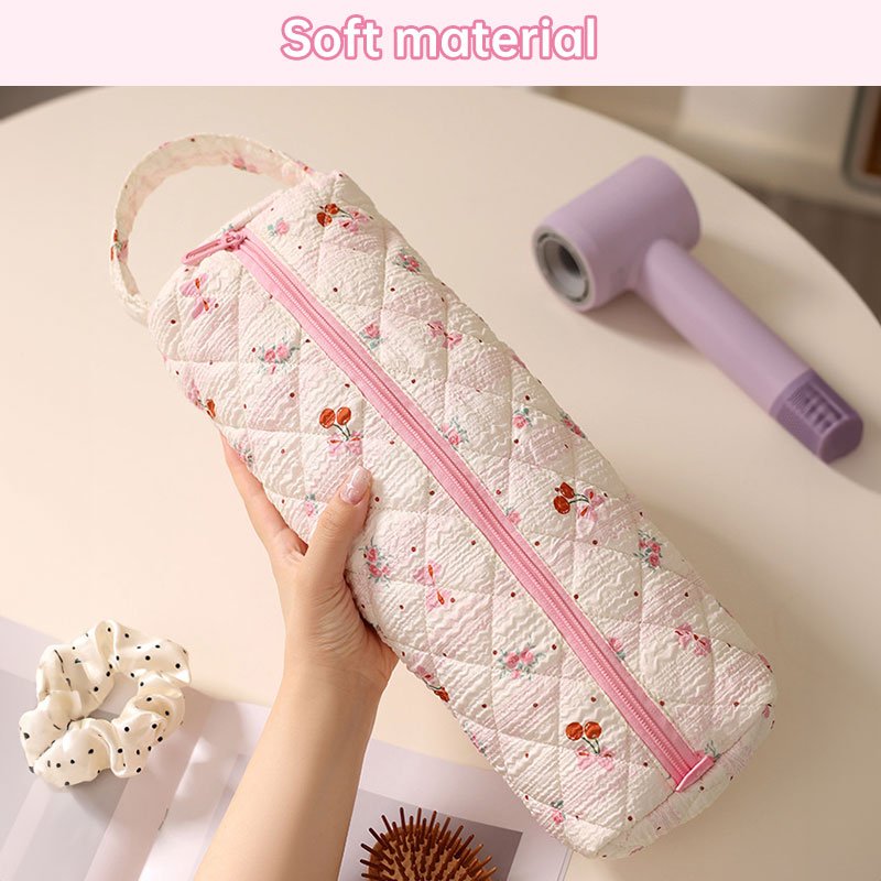 Product Type: Compact Roll-up Hair Dryer Storage Bag Key Visuals: Roll-up cylindrical bag, featuring a light-colored background with pink floral print, pink zipper, and a carrying handle. Dimensions: 36 cm (Length), 12.5 cm (Height), 8 cm (Diameter). Note: Manual measurement may have a 1-3 cm error. Weight: 78 grams Material: Polyester