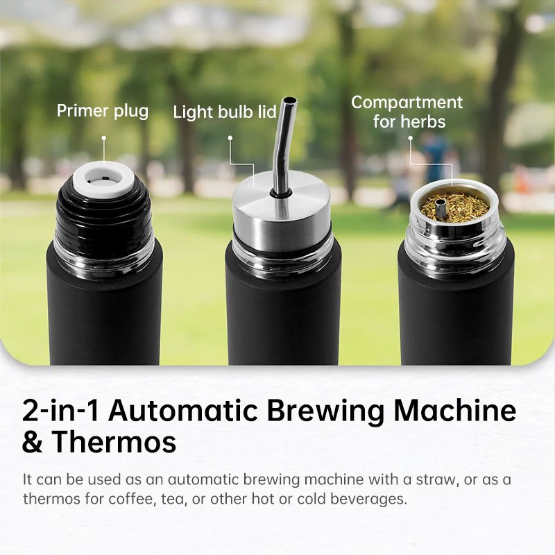 South American Mate Tea Travel Mug – Brazilian Filter Straw, Insulated Bullet Bottle, 3-in-1 Portable Mate Gourd Kit